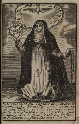 B. Dominique du Paradis de l’ordre de / St Dominique. Travailler vn chascun se / lon son Talent au salut des ames, ou par / predication, doctrine ou par prieres. ou par / penitance, dire le Venicreator ou L’office / du St Esprit, ou faire des actes d’amour.