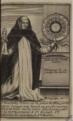 La .V. Mere Agnes de Iesus porteé a, Paris d’Au / uergne par son seraphin pour conuertir l’Abbé / Ollier du Tiers ordre de St Dominique et fon / dateur du Seminaire de St Sulpice. Pratiq. / Dire le Credo, changer de vie dompter sa pas- / sion dominante et faire L’Examen particulier sur : jcelle. Communier le .4. Dimanche du / mois.