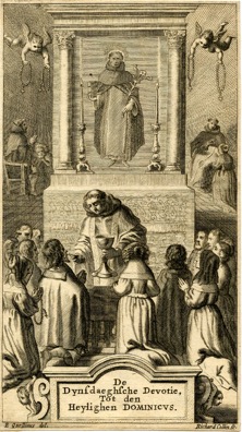 Frontispice pour François DEURWERDERS (1611-1666), De dynsdaeghsche devotie, tot den H. Dominicvs: om van Godt te verkrijghen al’t ghene wy begheeren, T’Antwerpen, By de Weduwe van Jan Cnobbaert, 1657.