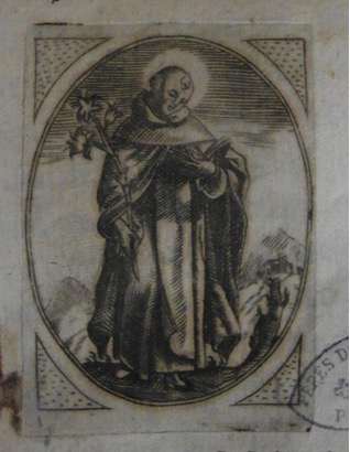 Vignettes pour Domingo SUÑER, Vida y Milagros de Santo Domingo de Soriano […], En Perpiñan, por Esteban Battau, en la calle de Espiná, 1651, au début du Soneto, sans pagination.