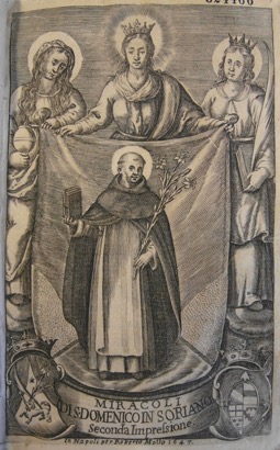 Titre illustré pour [CIANTES (Ignazio, dit Silvestre FRANGIPANE, 1594-1667)], Miracoli di S. Domenico in Soriano. Seconda Impressione, In Napoli, Per Roberto Mollo, 1647.