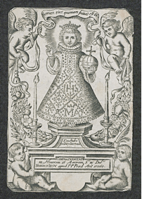 [1] Il a été impossible de déterminer si l’image est d’origine anversoise ou germanique. Du côté flamand, le monogramme pourrait être celui de Gomar Wouters (vers 1649-1680/1696).
