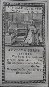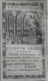 Quatre saints de l’Ordre sont figurés : Thomas d’Aquin, Vincent Ferrier et Catherine de Sienne (sur la même vignette), Dominique.