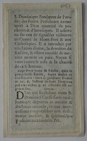 Une planche supplémentaire complète l’année des saints et l’illustration de quelques fêtes mobiles. Cette 26e planche offre une seconde iconographie pour saint Dominique. Or la scène qui est représentée est celle normalement attribuée à saint Hyacinthe [Voir Saints – Hyacinthe]. Faut-il voir dans ce doublon détourné la volonté de ne pas « gâcher » des planches surnuméraires, sans pour autant ajouter un saint supplémentaire au corpus ?