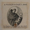Les saints Thomas d’Aquin, Vincent Ferrier, Pierre Martyr et Dominique furent copiés en contrepartie pour illustrer une édition des Fleurs des saints, éditée à Lyon chez Estienne Baritel, en 1684 [Voir Estampes en séries – Séries non dominicaines].