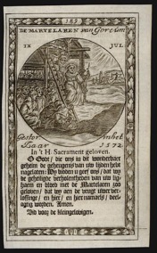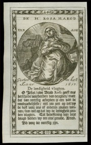 Cette image et les deux suivantes sont peut-être issues de la série gravée en 1717 pour Willibrord Kemp qui édita à Utrecht Kort-begrip van het gedrag der Heiligen.