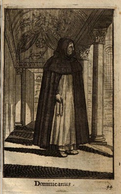 Second état : la planche a été reprise. La chape a été davantage noircie. Des ombres ont été portées dans le bas de l’image. La lettre est devenue : « Religieux de S.Dominique. ». Planche pour Histoire du Clergé seculier et regulier. Des Congregations de Chanoines & de Clercs, & des Ordres Religieux de l’un & de l’autre sexe, qui ont été establis jusques à present. Contenant leur Origine, leurs Fondations, leurs Progrès, leur maniere de Vie, leur Decadence, leurs Reformes, & les évenements les plus considerables qui y sont arrivés, Avec des Figures qui représentent les differens habillemens de ces Ordres & Congregations. Nouvelle Edition tirée du R. P. P. Bonanni, de Mr. Herman, de Scoonbeek, du R. P. Heyliot, & d’autres qui ont écrit sur ce sujet, avec plusieurs augmentations, qui contient l’Ordre de Saint Augustin, les Nouveaux Instituts, les Ordres abolis & supposés, & les Chanoinesses. Tome troisieme, A Amsterdam, Chez Pierre Brunel, 1716.