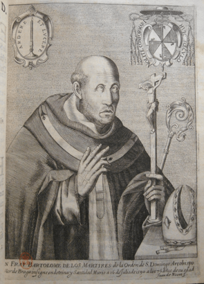 DON FRAY BARTOLOME DE LOS MARTIRES de la Orden de S. Domingo Arçobispo / Señor de Braga insigne en dotrina y santidad Murio a 16 de Julio de i590 a los 76 años de su edad / Juan de Noort f.