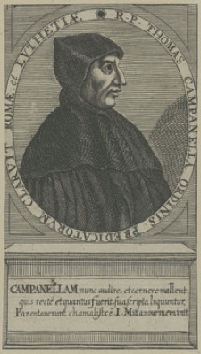 R.P. THOMAS CAMPANELLA Ordinis Prædicatorum / Turbæ Peripateticæ Euersor Eximius Claruit Romæ et Lutetiæ. / CAMPANELLAM nunc audire, et cernere mallent : / quis rectè, et quantus fuerit, sua scripta loquuntur. / Parentauerunt Chamahistæ, I. Mittannour meminit. / B. Moncornet exc