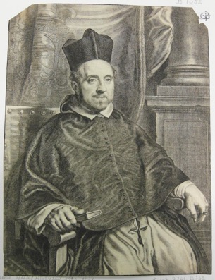 Le religieux est présenté en 3/4, de trois quarts vers la droite, assis dans un fauteuil près d’une colonne. Vêtu d’un camail, il porte un bonnet de docteur sur la tête. Une croix dépassant de son camail indique son appartenance à l’Ordre des Prêcheurs. Les bras sont posés sur les accoudoirs et la main droite tient un livre fermé. Derrière le prélat une draperie porte ses armoiries.