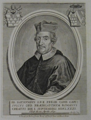 FR. RAYMVNDVS S.R.E. PRESB. CARD. CAPI: / SVCCVS ORD. PRAEDICATORVM ROMANVS / CREATVS DIE I. SEPTEMBRIS MDCLXXXI. / Obijt die 22 Aprilis 1691. / Arnoldo Van / Westerhout Scul.