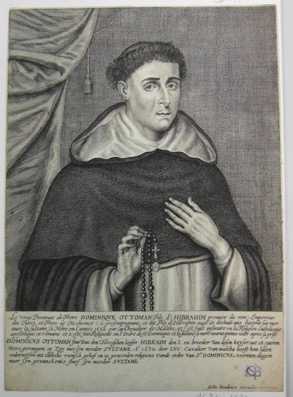 Le vray Portrait de Frere DOMINIQVE OTTOMAN Fils d’HIBRAHIM premier du nom) Empereur / des Turcs, et Frers de Mehemet à present regnant, ce dit Fils d’Hibrahim aagé de dixhuit ans fut pris sur mer / avec la sultane sa Mere en l’année 1652 par Luc Cheualier de Malthe, et s’est fait instruire en la Religion catholicque / apostolique et romaine et a esté fait Religieux en l’Ordre de st Dominique et la sultane sa mere mourut quinze iours apres sa prise / DOMINICVS OTTOMAN sone van den Turcxschen keyser HIBRAIM den. I. en broeder Van desen keÿser) out .18. jaeren / Wirt gevangen op Zee met sÿn moeder SVLTANE A° 1652 door LVC: Cavalier Van maltha heeft hem laten / onderwÿsen int catholic roomsch geloof en is geworden religieus vande ordre Van St DOMINICVS, veertien dagen / naer sÿn gevanckenis sturf sÿn moeder SVLTANE / Gillis Hendricx excudit Antverpiæ