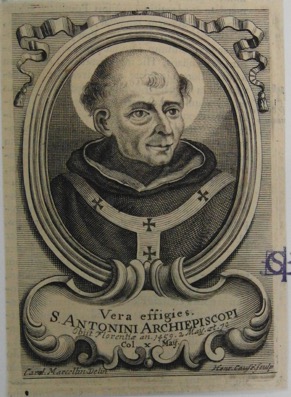 Vera effigies / S. ANTONINI ARCHIEPISCOPI / obiit Florentiæ an. 1459. 2 Maij. Æt. 70 / Col. X Maij