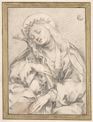 Le département des arts graphiques du musée du Louvre conserve un dessin attribué à Francesco Vanni qui ne peut qu’être rapproché de cette estampe et de toutes celles gravées selon ce modèle. Voir ci-après.