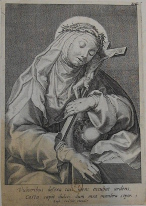Vulneribus defixa tuis mens excubat ardens, / Casta capit dulcis dum mea membra sopor. / Raph Sadeler excudit