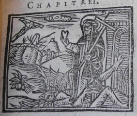 Outre cette vignette dont le nom du créateur ou/et de l’éditeur a été gratté, l’ouvrage contient une autre vignette en gravure sur bois, imprimée deux fois, la première au début du premier livre, la deuxième au début du deuxième. La vignette est absente du troisième livre. Voir ci-après.