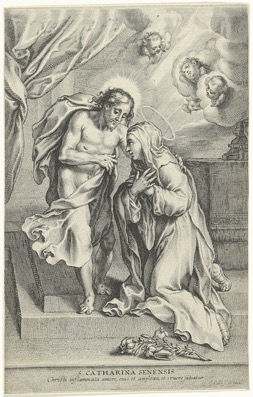 S. CATHARINA SENENSIS / Christi inflammata amore, eius et amplexu, et cruore satiatur.
