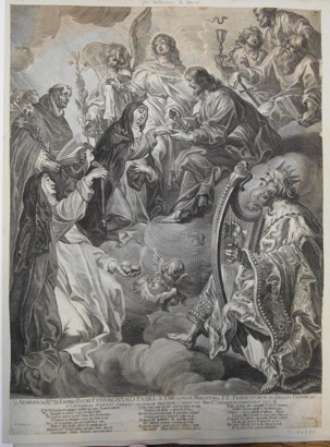 ADMODVM Rdo & EXIMO PATRI P HIERONYMO FABRI, S. THEOLOGIÆ MAGISTRO, F.F. PRÆDICATORVM IN BELGIO PROVINCIALI / S. CATHARINAE SENENSIS CHRISTO DESPONSÆ IMAGINEM, CONVENTVS BRVXellensis CONGRATVLATIONIS ERGÔ D. C. Q.