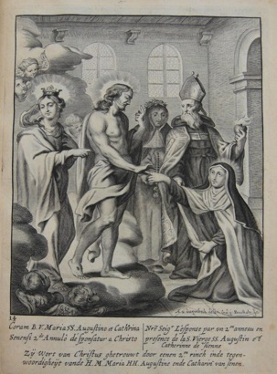 Zij Wort van Christus ghetrouwt door eenen 2en rinck inde tegen- / woordigheijt vande H. M. Maria HH. Augustineende Catharin[a] van Senen.