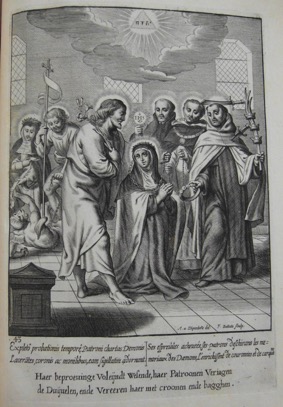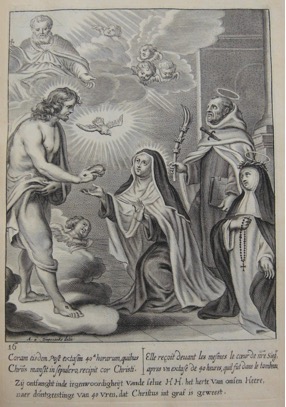 Béatifiée par Urbain VIII le 23 avril 1627, Marie-Madeleine de Pazzi (1566-1607) fut canonisée par Clément IX le 28 avril 1669. Sa Vie en planches dessinée par Abraham Van Diepenbeeck parut à cette occasion.