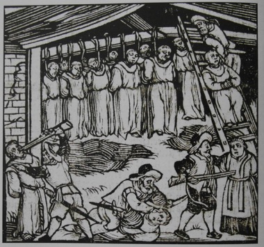 Parmi les pendus, il est impossible de discerner Jean de Cologne. L’image est essentiellement évocatrice des récollets.
