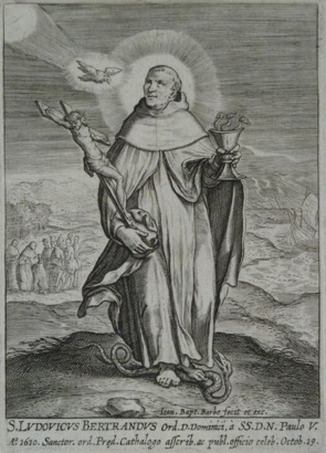 S. LVDOVICVS BERTRANDVS Ord. D. Dominici, à SS.D.N. Paulo V. / A° 1610. Sanctor. Ord. Pr[a]ed. Cathalogo asscrib. ac publ. officio celeb. Octob. 19.