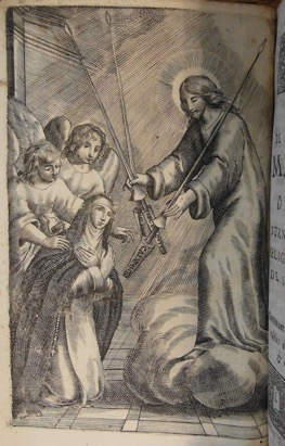 Le modèle de la planche fut peut-être créé en 1635 par Grégoire Huret (1606-1670) pour illustrer un ouvrage de Jean Giffre de Rechac sur les bienheureuses et saintes de l’Ordre des Prêcheurs [voir page 2].