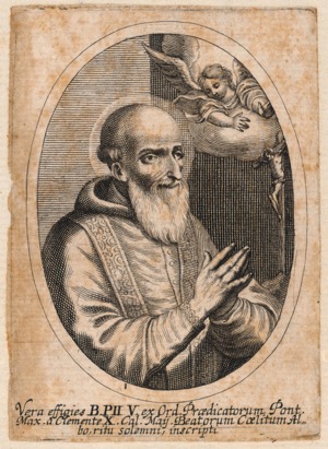 Vera effigies B. PII V. ex Ord. Prædicatorum Pont. / Max. a Clemente X. Cal. Maij. Beatorum Cœlitum Al- / bo, ritu solemni, inscripti