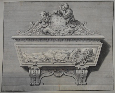 La planche de Nicolas Dorigny fut insérée dans une Vie du pape Pie V, l’année de sa canonisation (1712), tandis que le texte donnait la description de la châsse[1].