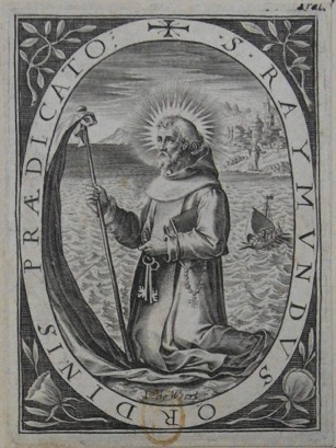 Raymond de Peñafort fut canonisé en 1601 et l’on peut imaginer que l’estampe fut incisée dans ce contexte, d’autant que le « S » de la lettre le désigne comme saint et non comme simple bienheureux.