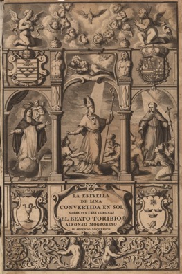LA ESTRELLA / DE LIMA / CONVERTIDA EN SOL, / SOBRE SVS TRES CORONAS / EL BEATO TORIBIO / ALFONSO MOGROBEXO / SV SEGVNDO ARÇOBISPO.