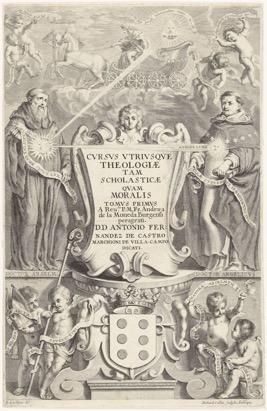 CVRSVS VTRIVSQVE / THEOLOGIÆ / TAM / SCHOLASTICÆ / QVAM / MORALIS / TOMVS PRIMVS / A Reudo P.M.Fr. Andræa / de la Moneda Burgensi / peragrati. / D.D. ANTONIO FER: / NANDEZ DE CASTRO / MARCHIONI DE VILLA-CAMPO / DICATI.