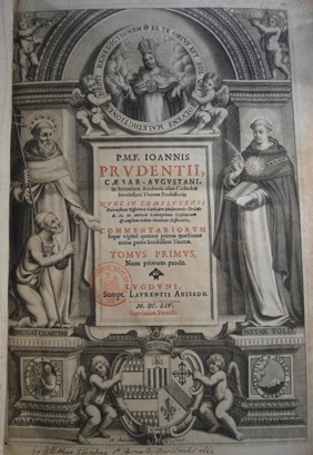 P.M.F. IOANNIS / PRVDENTII, / CÆSAR-AVGVSTANI, / in Sertoriana Academia olim Cathedræ / Sanctissimi Thomæ Professoris; / NUNC IN COMPLVTENSI / Vniuersitate Vespertina Cathedra Moderatoris : Ordinis / B. M. de Mercede Redemptionis Captiuorum / & eiusdem ordinis Generalis Diffinitoris, / COMMENTARIORVM / Super viginti quatuor primas quæstiones / tertiæ partis Sanctissimi Thomæ. / TOMVS PRIMVS, / Nunc primum prodit. / LVGDVNI, / Sumpt. LAVRENTII ANISSON. / M. DC. LIV. / Superiorum Permissu.