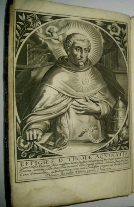 EFFIGIES D THOMÆ AQVINATIS / Quem Ecclesia Doctorem, scholæ magistrum, hæretici flagellum habuere: quemq[ue] Pius Papa V. quintum Ecclesiæ / Doctorem nominare solebat. Hunc Italia nascentem vidit, sanguinis nobilitas celebrauit. Auus euis fuit / Comes Sommacolensis, qui Frederici II Imp. Sorore ducta Landulphum progenuit, cui Theodora Comitis / Theanensis filia Sanctum Thomam peperit. P. Firens excu.