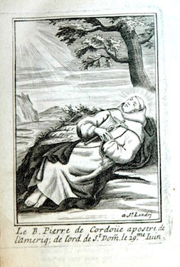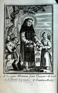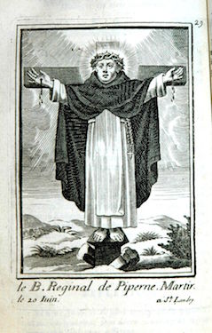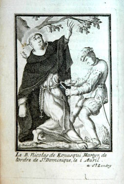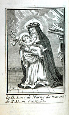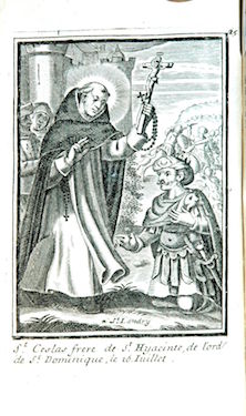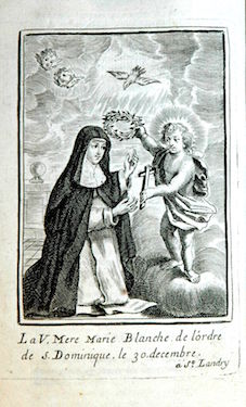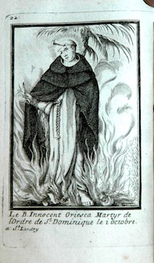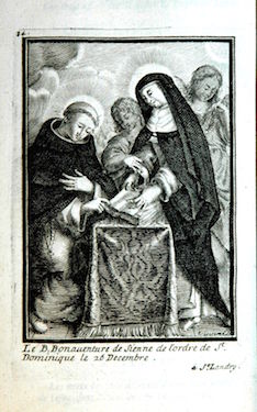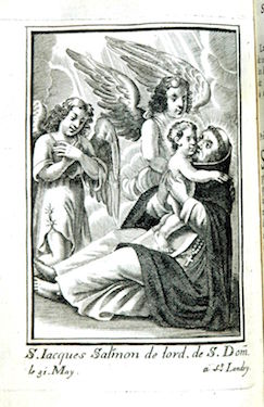 Il est difficile de dire à quelle date elle fut insérée comme frontispice de cet exemplaire de l’ouvrage, les autres planches l’y ayant été après 1698 et plus vraisemblablement au début du XVIIIe siècle. Ces cent planches représentant des membres de l’Ordre des Prêcheurs sont reproduites ci-après sans commentaire mais dans leur ordre d’apparition actuel au sein des quatre tomes de l’ouvrage, conservés à la Bibliothèque municipale de La Rochelle qui a réalisé les clichés. Les planches proviennent toutes du fonds de la famille Landry mais ont été gravées par différentes mains, par exemple par Louis David (vers 1644-?).